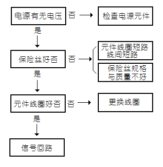 (2)在自動循環(huán)中,進入充料工序,但沒有吹料動作,手動檢查發(fā)現(xiàn)吹料閥不動作,作如下檢修:→+24V電源好→+24v保險絲好→用萬用表測量吹料電磁閥線圈,→線圈燒毀,→更換線圈 。
